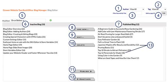- Inactive Blogs are in the left-hand column and do not display on your website.