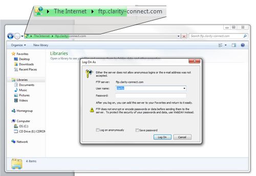 Your login and password will take you to your company's secure folder so you can upload your data without it being accessed by anyone other than your authorized staff and Clarity Connect.