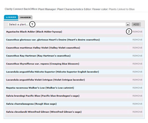 Select a plant from the drop down list and click 'Add' to add it to the list.