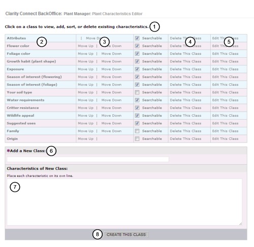 If there are existing classes they will be listed here in a table with the following columns from left to right, Class Name, Order in List, Delete This Class, Edit This Class.