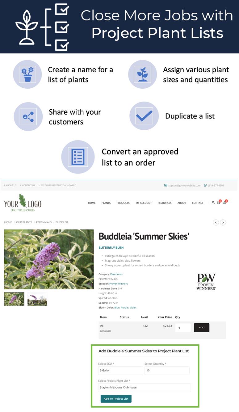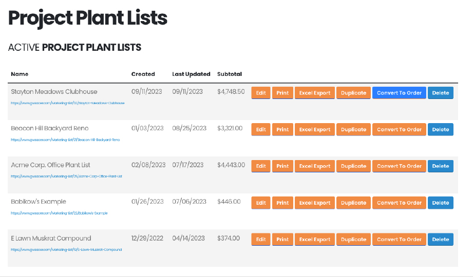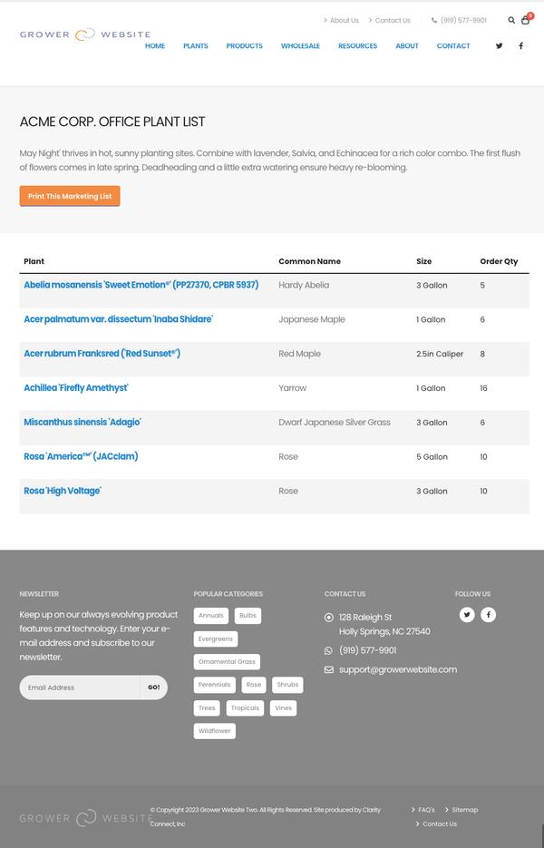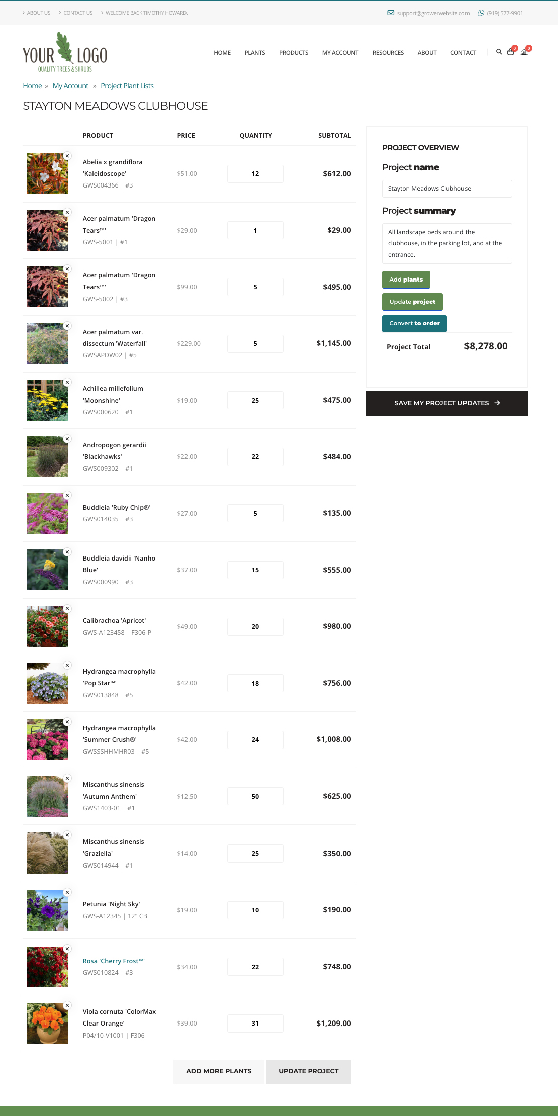 After logging in, your customers can create their own custom plant lists for their landscaping jobs, future orders, or other marketing.