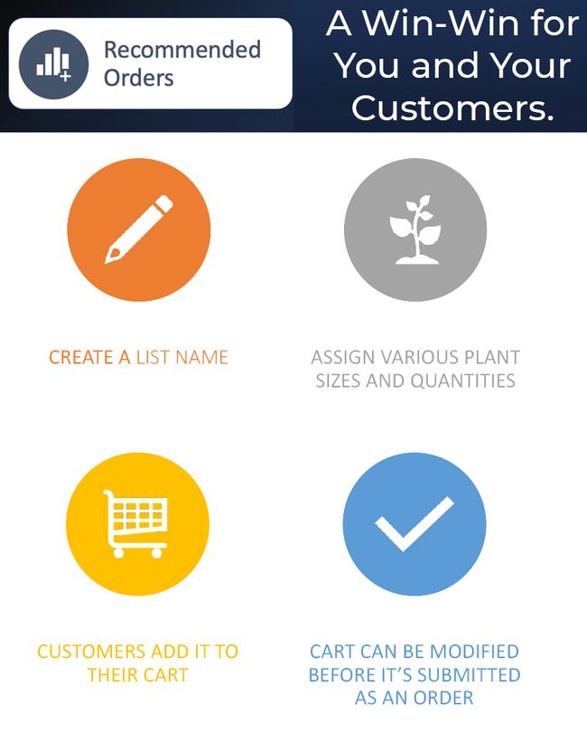 Recommended Orders is new functionality we developed based on requests from growers that sell to Garden Centers. They want to put together a list of recommended plants to create suggested orders for various scenarios.
