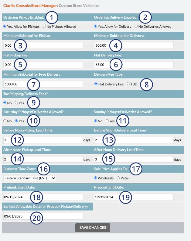 - Set the number of days needed to prepare an order for pickup if it is placed after noon.