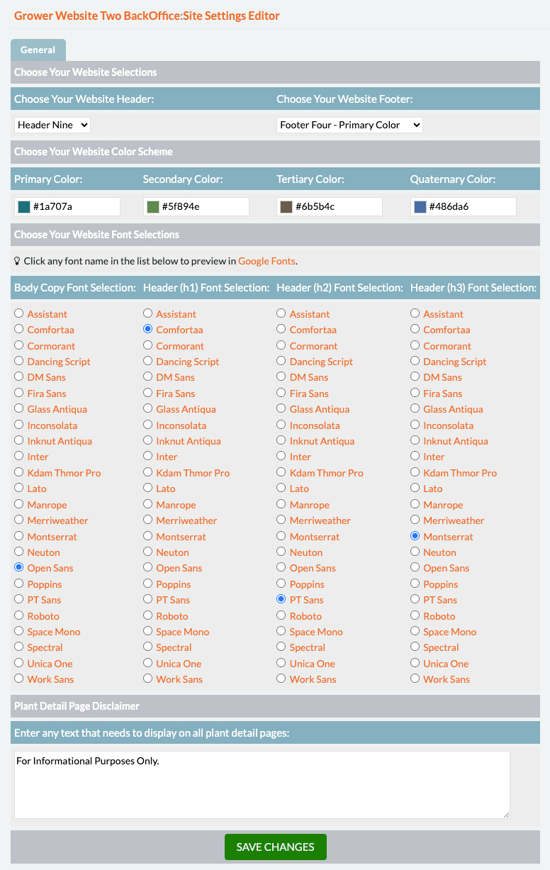 Fonts: Select from a list of fonts to use throughout your website.
